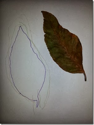 She was suppose to color the traced leaf but instead i think she was trying to trace it again hehe